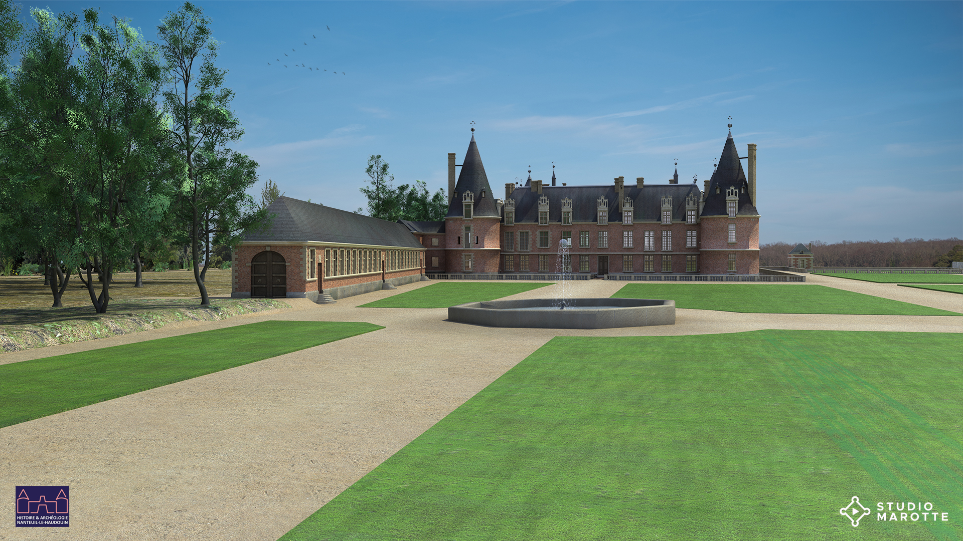 L'Association Histoire et Archéologie de Nanteuil-le-Haudouin (Oise) a confié au Studio Marotte la reconstitution 3D du château de Nanteuil détruit après la Révolution. Vous pourrez découvrir quelques images issues de la modélisation 3D de ce château Renaissance dans le style briques et pierre.